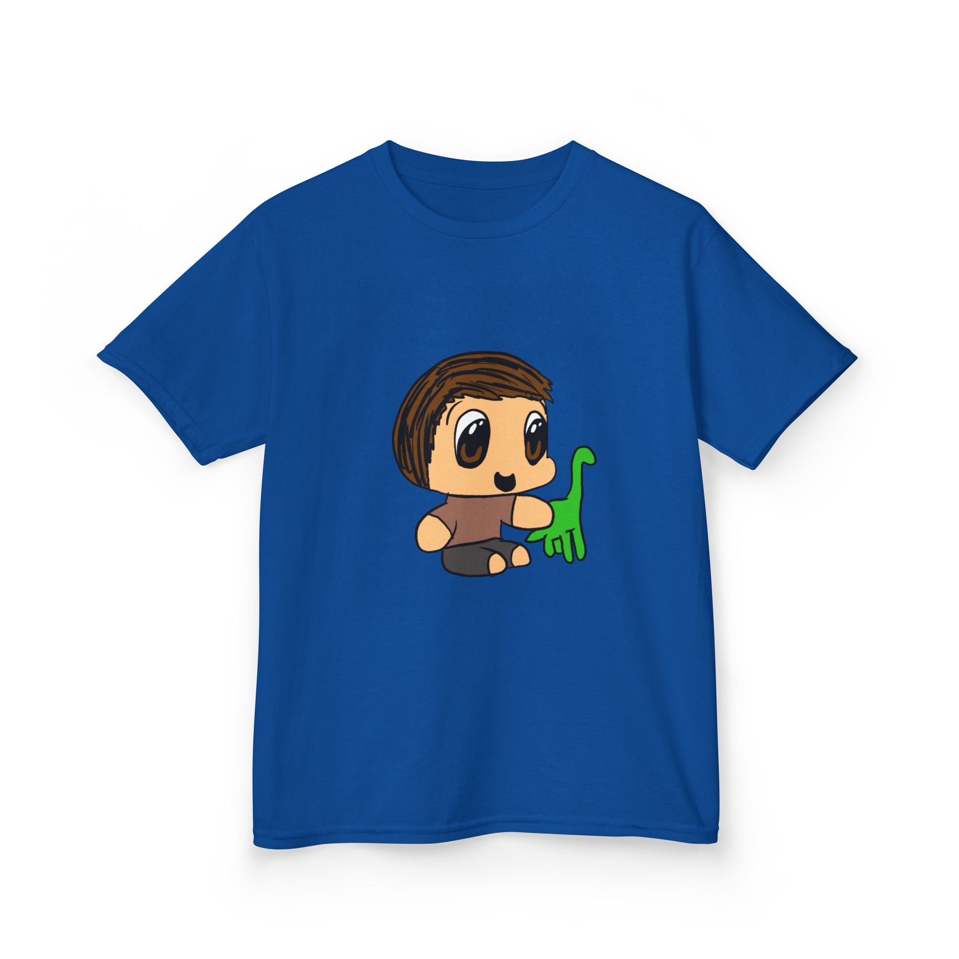 Kids T‑Shirt — Cute Cartoon Boy with Green Dino Graphic